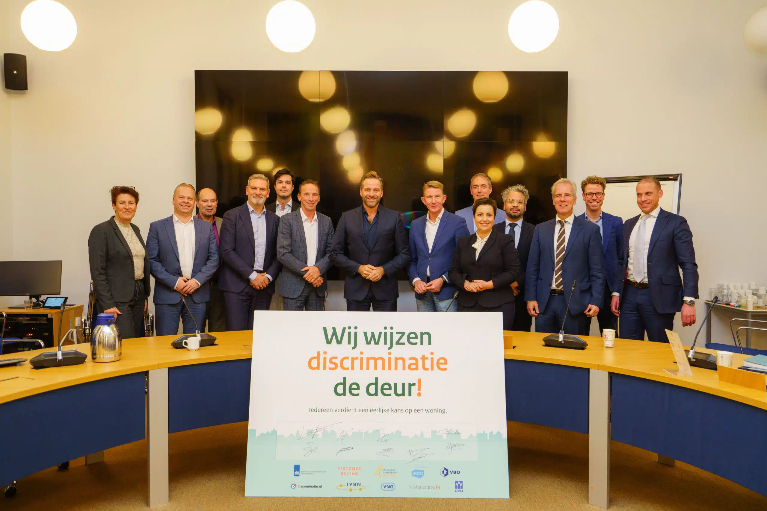 Rijksoverheid gaat zich, samen met de gemeenten, IVBN, VastgoedBelang, Vastgoedpro, VBO, Vastgoedmanagement Nederland, NVM, Aedes en Discriminatie.nl, actief inzetten om woondiscriminatie tegen te gaan. Alle partners starten daarom met een voorlichtings- en bewustwordingscampagne om discriminatie samen de deur te wijzen. De campagne is onderdeel van de aanpak woondiscriminatie.